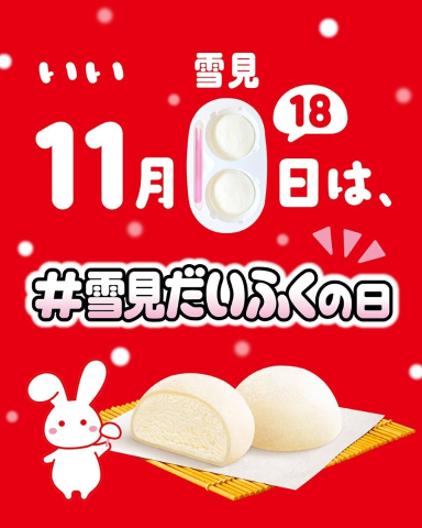 ロッテが制定した記念日。11月は「いい」と読む語呂合わせ、18日はパッケージを開けたときに付属のスティックと2つの「雪見だいふく」で「18」に見えることからだそうです!